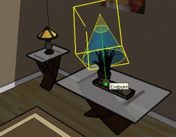 Use cursor to point component. (Cursor position is near where the word "Endpoint" appears.) As you move the cursor, the component points to the cursor location until you click the mouse button. The base point of the component stays fixed.