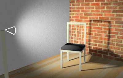 Large lamp placed in front of chair. 30 rendering passes. Note soft shadows