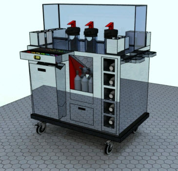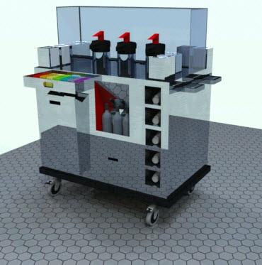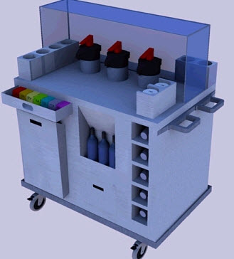 I put a reflective floor below the trolley to give the metal panels something to reflect.