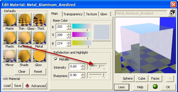 - You can choose preset default material types, and then adjust the individual controls.