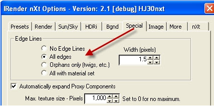 - Edge Settings are on the Special Tab of the IRender nXt Setup Wizard.