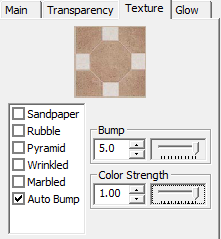 With IRender nXt, you can use the nXt material editor to create your own materials, with many additional material features, including bump mapping.