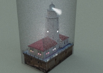This engine can create special effects like fog, but does so at the expense of a more complex and time-consuming calculation. The Path Tracer begins by displaying a very grainy or “noisy” image which gradually refines and becomes smooth. This process is known as convergence. Some scenes will converge very quickly, others will take many hours.